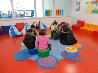 “O Comboiozinho” de Matilde Rosa Araújo levou os meninos para a biblioteca onde, em círculo de arco-íris, ouviram e leram palavras bonitas de alguns poetas. Palavras que nos ficaram a bailar na imaginação.