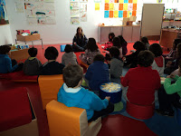 Logo pela manhã, a BE teve a visita da mãe de uma aluna do 1ºB que veio partilhar duas histórias com os alunos e fazer um pequeno exercício de meditação. Foi a terceira vez em que familiares de alunos da turma vieram à escola ler e esperamos que apareçam mais, muitas vezes.Foi mais um excelente exercício de partilha de emoções, através da apresentação e leitura da obra "Natal nas asas do arco-íris", de Alice Cardoso, e de um pequeno livro intitulado "A educação", ótimo instrumento de trabalho de valores cívicos.